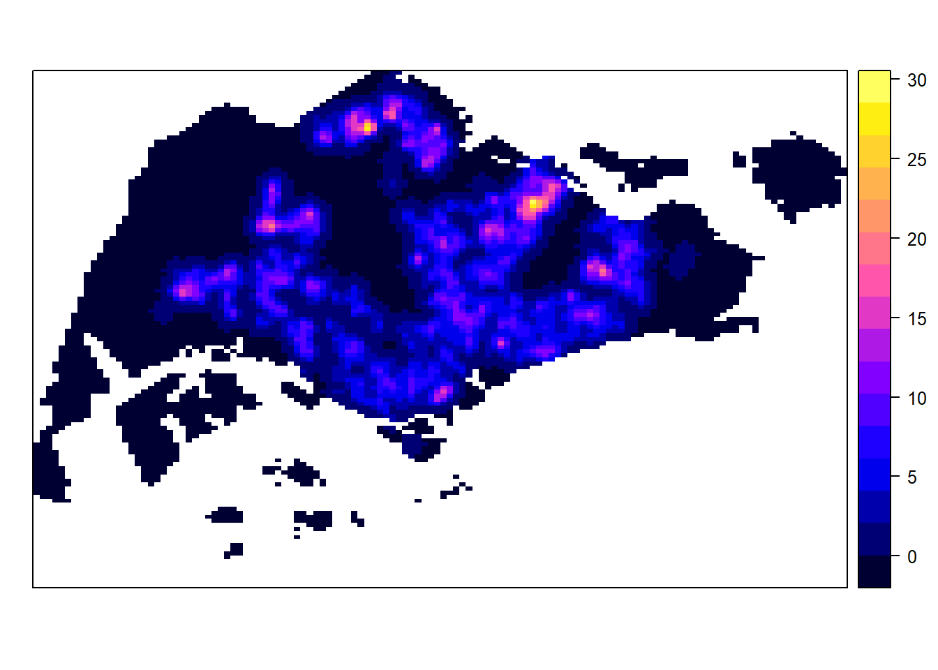 projection(kde_childcareSG_bw_raster) <- CRS("+init=EPSG:3414")