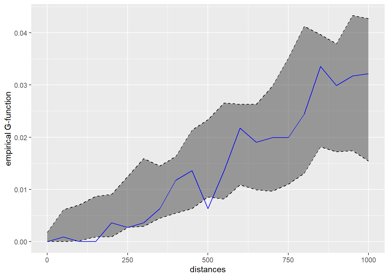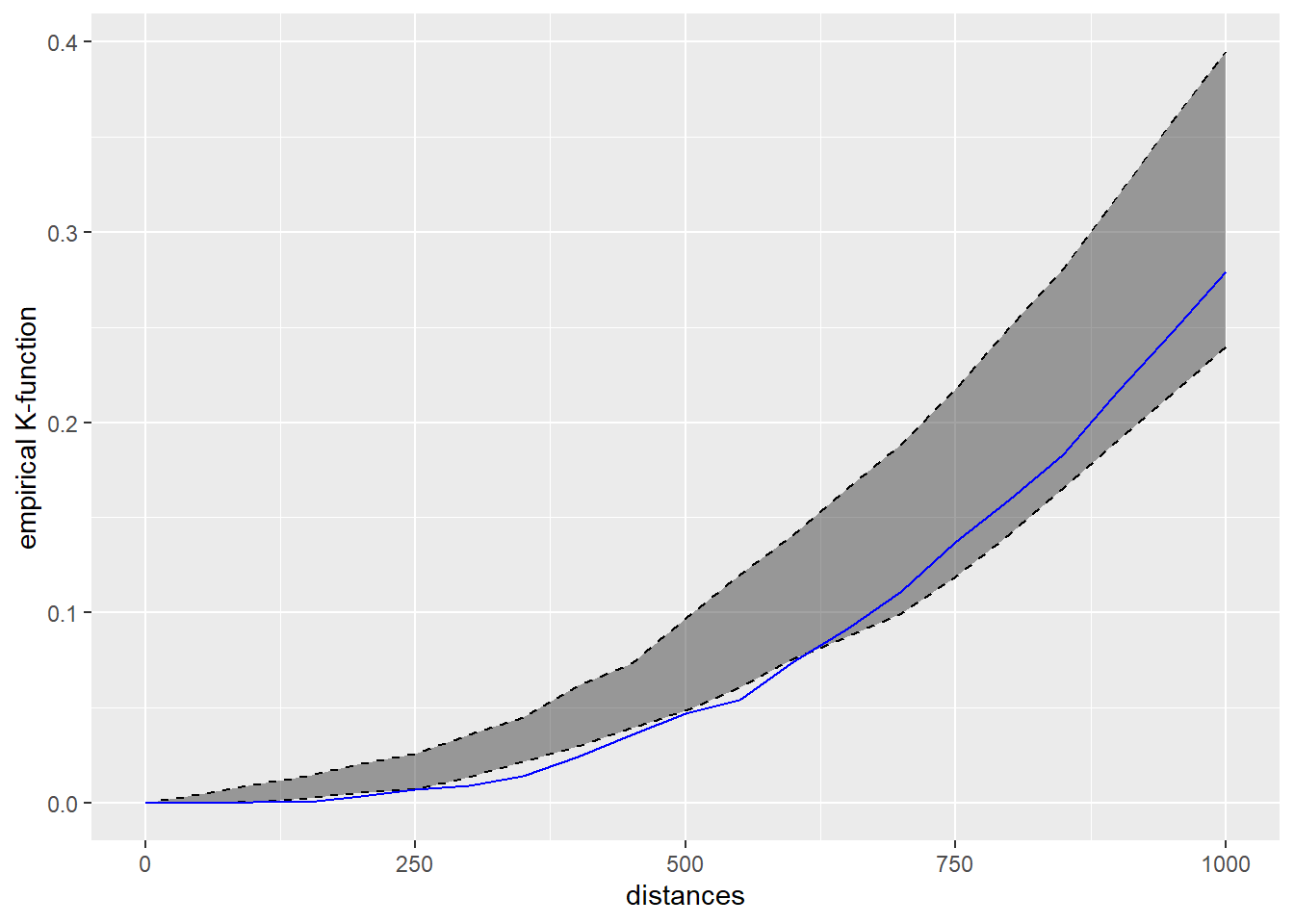 For example, we can visualise the ggplot2 object of k-function by using the code chunk below.