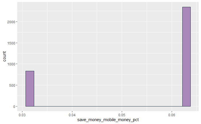 $ save_money_mobile_money_pct <dbl> 0.03148615, 0.06297229, 0.06297229…